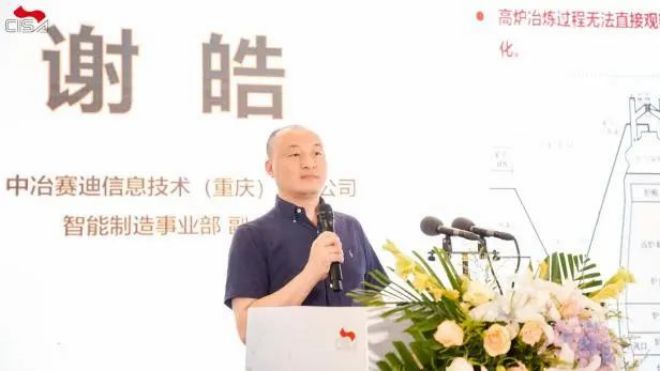 中冶賽迪信息技術(重慶)有限公司智能制造事業部副總經理謝皓做《高爐數字孿生技術的開發與應用》主題演講