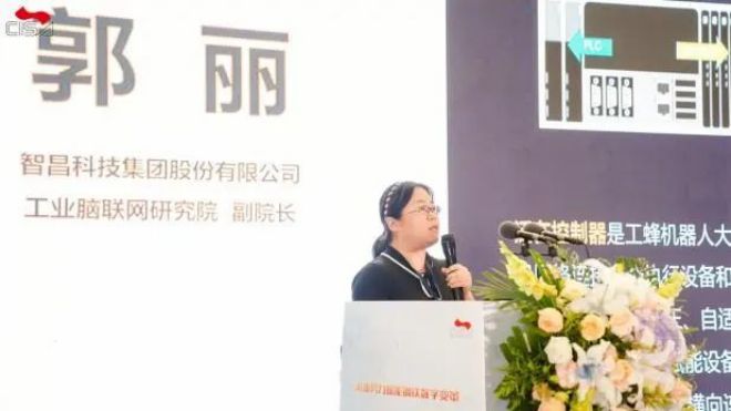 智昌科技集團股份有限公司工業腦聯網研究院副院長郭麗做《基于AI技術的工業機器人集群應用》主題演講