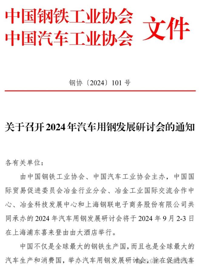 關于召開2024年汽車用鋼發展研討會的通知
