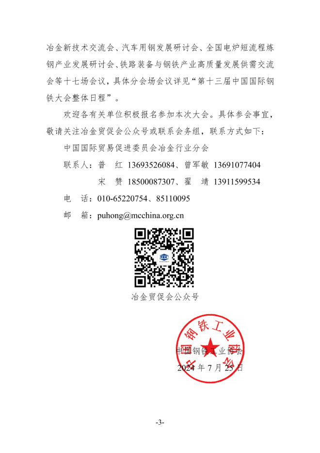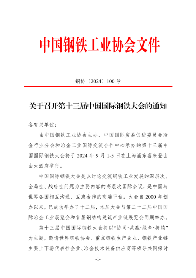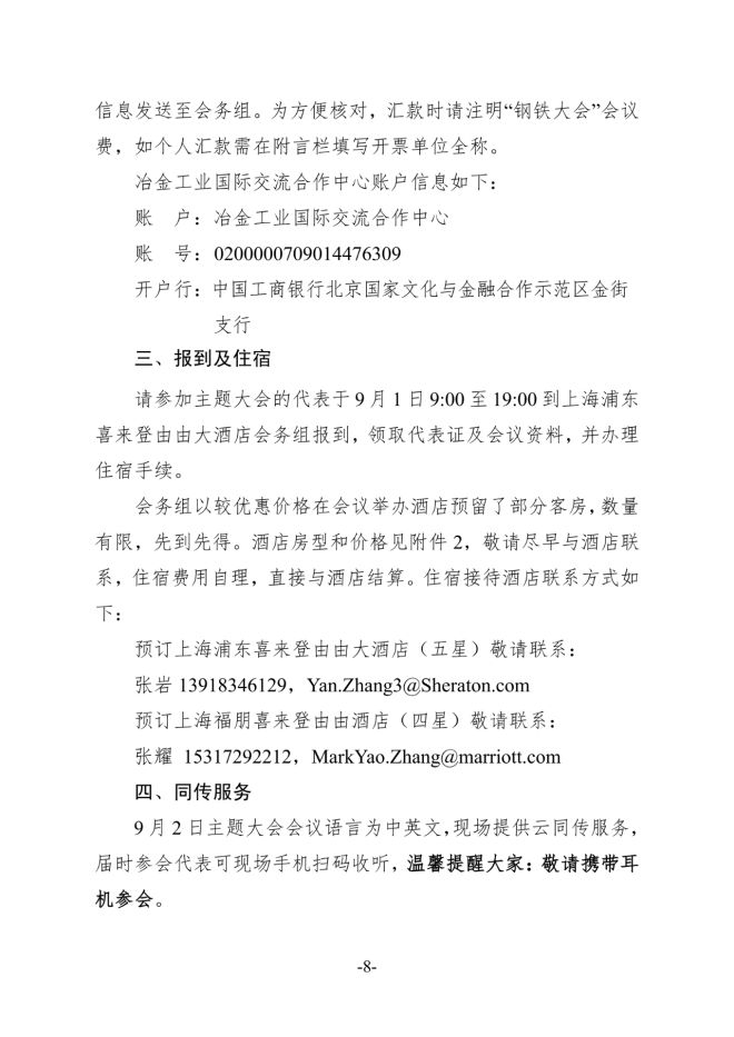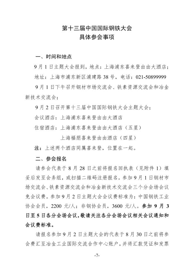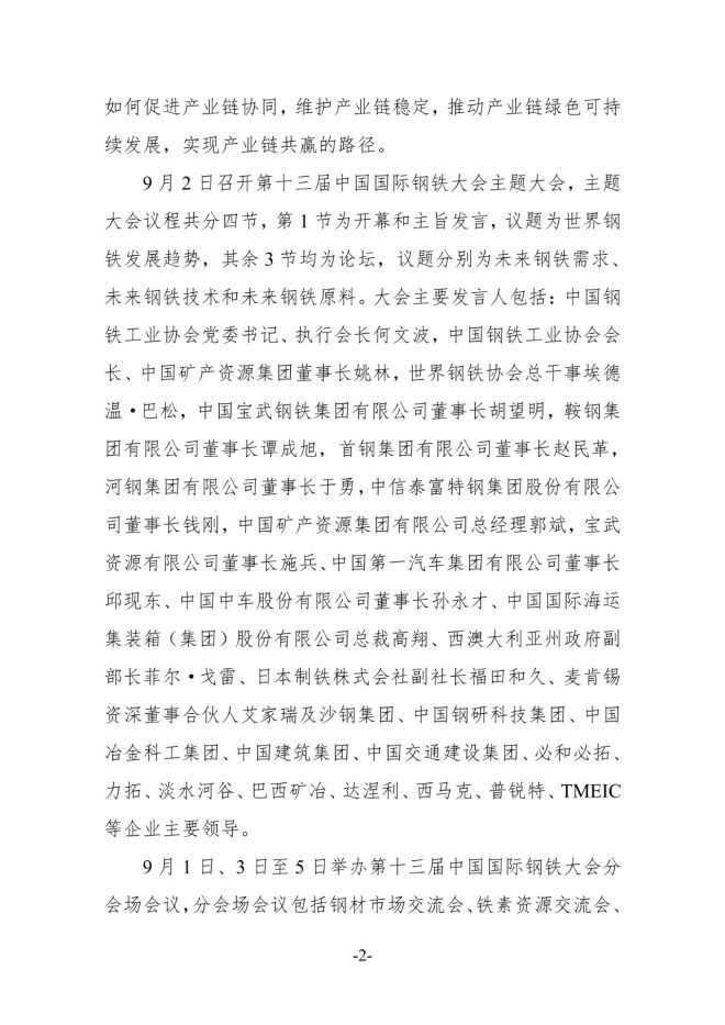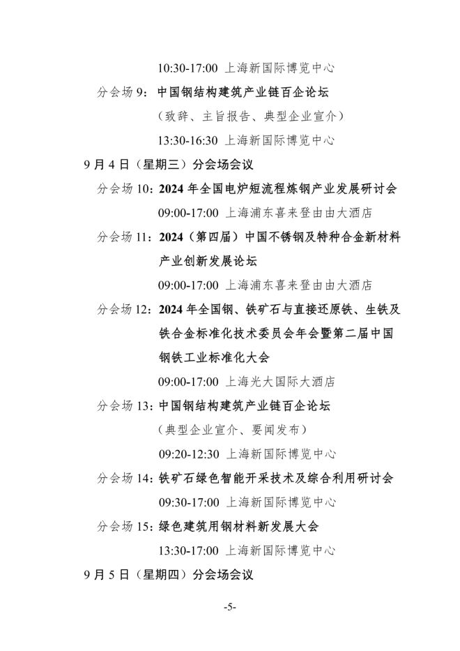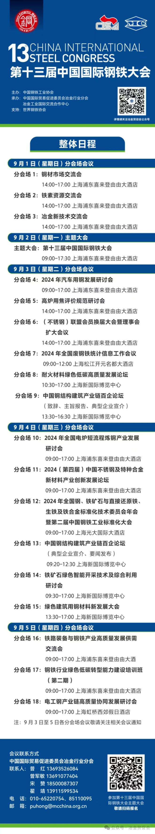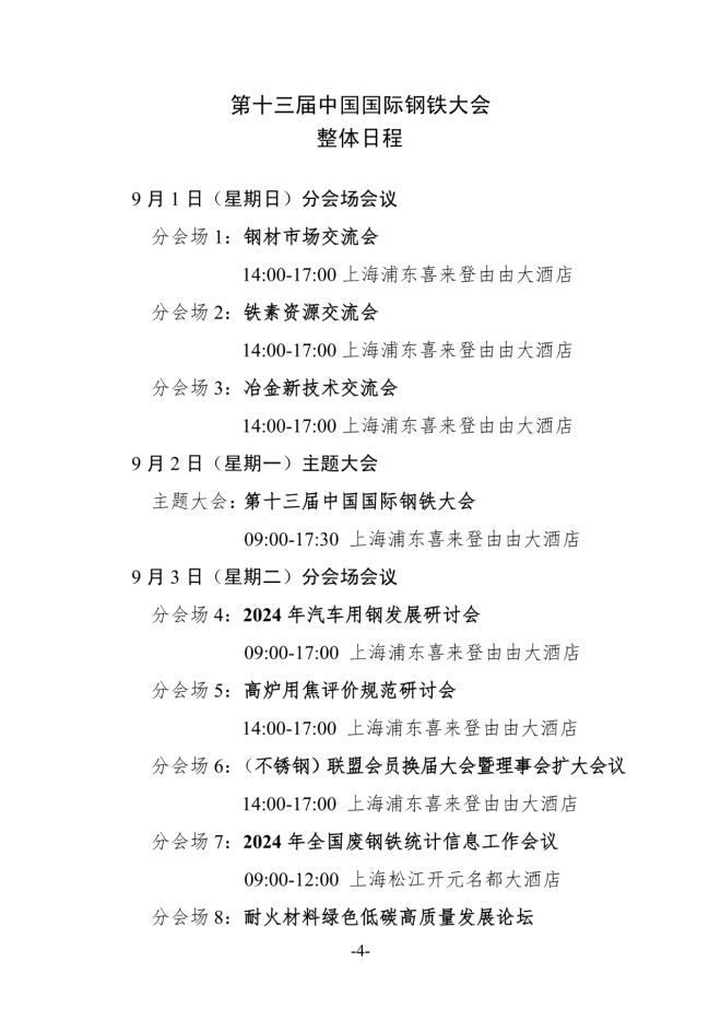 整體日程 | 第十三屆中國國際鋼鐵大會