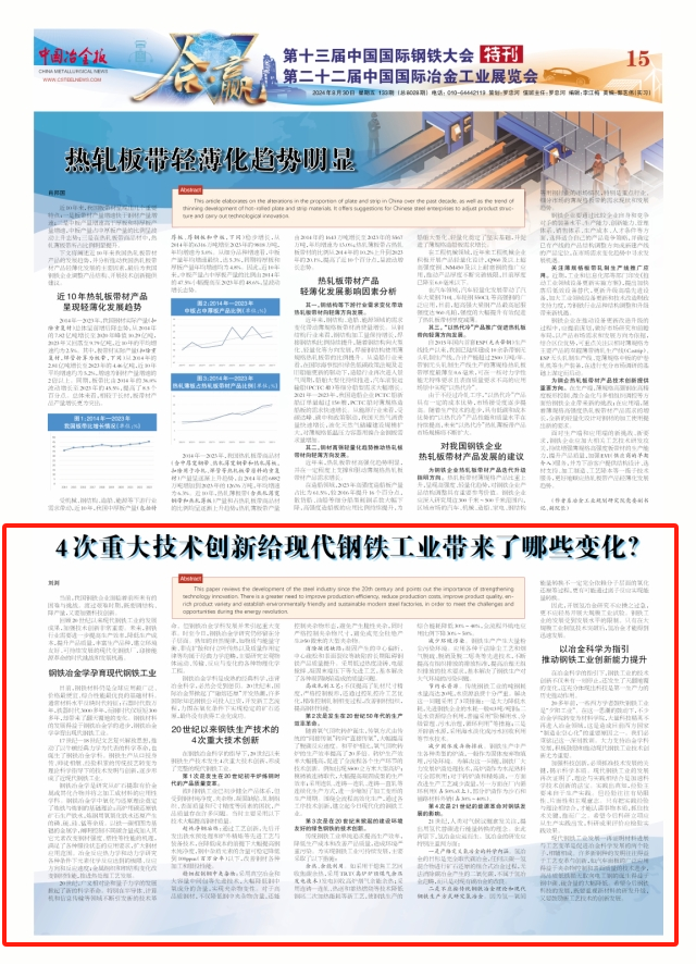 在冶金科學(xué)的指引下,鋼鐵工業(yè)的技術(shù)創(chuàng)新不僅未有一刻停止,還發(fā)生了天翻地覆的變化,這充分體現(xiàn)出科技是第一生產(chǎn)力的歷史推動作用。