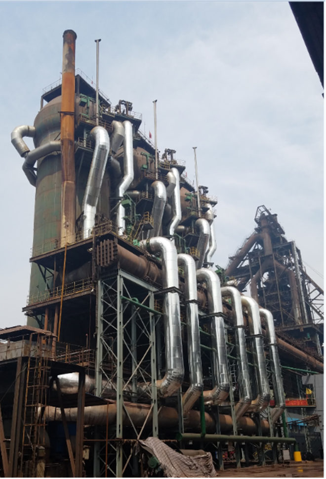 為廣東韶鋼3200 m3、南鋼2000m3、印度AIPL300m3、印度RML300m3等高爐配套的內燃式熱風爐,均開展了將爐殼利舊改造為豫興懸鏈線頂燃式熱風爐的升級改造。