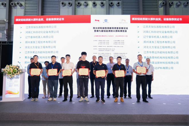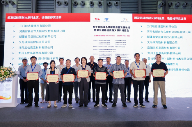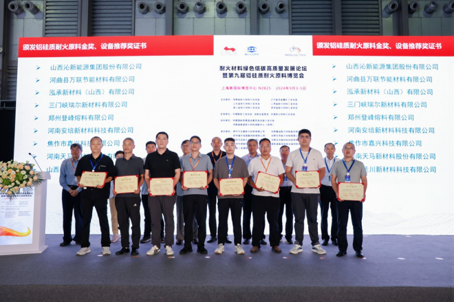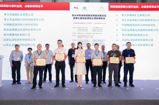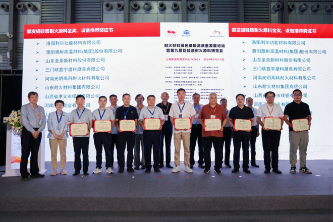 會上六省協會等負責人頒發了第九屆鋁硅質耐火原料金獎、設備推薦獎證書,共有43個鋁硅質耐火原料獲得金獎,14家企業獲得設備推薦獎。