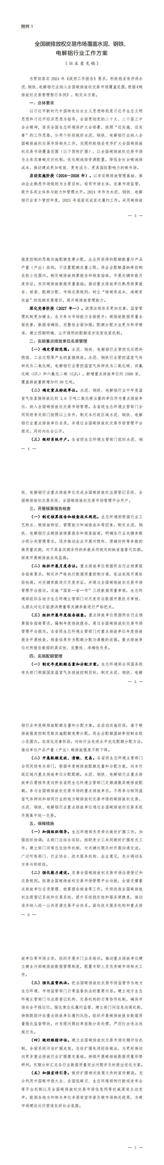 《全國碳排放權交易市場覆蓋水泥、鋼鐵、電解鋁行業工作方案(征求意見稿)》公開征求意見