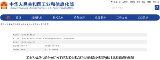 9月20日,工業和信息化部發布了《工業重點行業領域設備更新和技術改造指南》(以下簡稱《指南》)。其中提到,我國將在27個工業重點行業領域進行大規模設備更新。