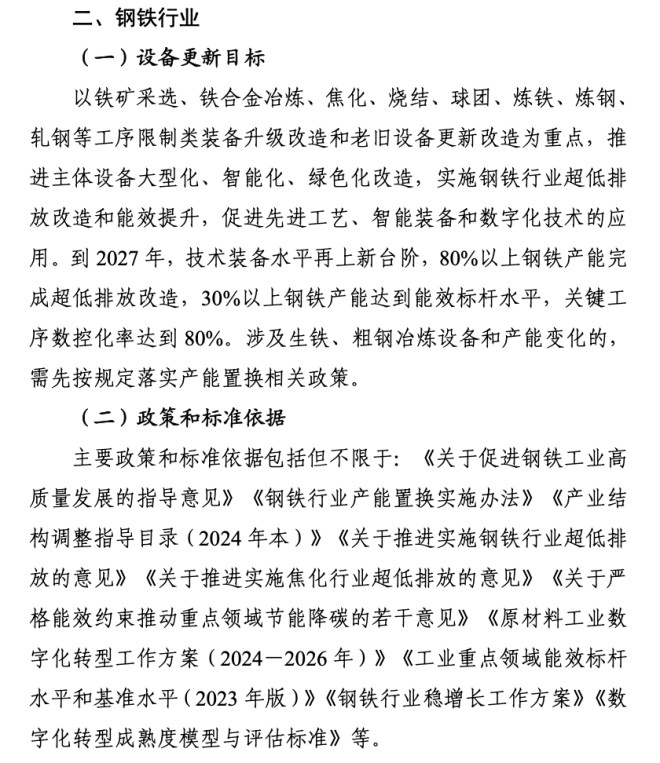 鋼鐵行業到2027年,80%以上鋼鐵產能完成超低排放改造。
