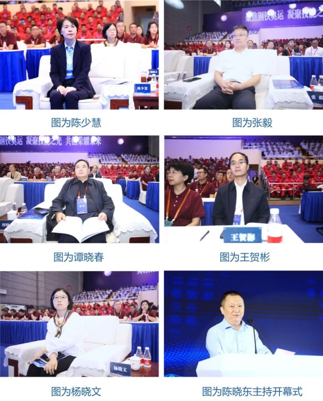 張家港市委書記韓衛;中鋼協副秘書長,中國冶金報社黨委書記、社長范鐵軍;中鋼協組織人事部(黨委辦公室)主任臧若愚;中國機械冶金建材工會全國委員會鋼鐵工作部部長、一級調研員王欣;江蘇省機冶石化工會主任張旭海;江蘇省職業技能鑒定中心主任楊進保;蘇州市總工會黨組成員、副主席吳洪斌;張家港市委常委,副市長李炳龍;張家港市人大常委會黨組成員,市總工會黨組書記、主席夏立新;江蘇揚子江國際冶金工業園黨工委書記、錦豐鎮黨委書記沙立平;蘇州市人力資源和社會保障局四級調研員文心;沙鋼集團常務執行董事、總裁龔盛;沙鋼集團常務執行董事、副總裁,沙鋼鋼鐵有限公司董事長陳少慧;張家港市人力資源和社會保障局局長張毅;冶金人才資源開發中心黨委書記、主任譚曉春;冶金工業教育資源開發中心黨總支副書記、副主任(主持工作)王賀彬;蘇州市總工會勞動和經濟工作部部長楊曉文等出席開幕式。沙鋼集團常務執行董事、副總裁陳曉東主持開幕式。