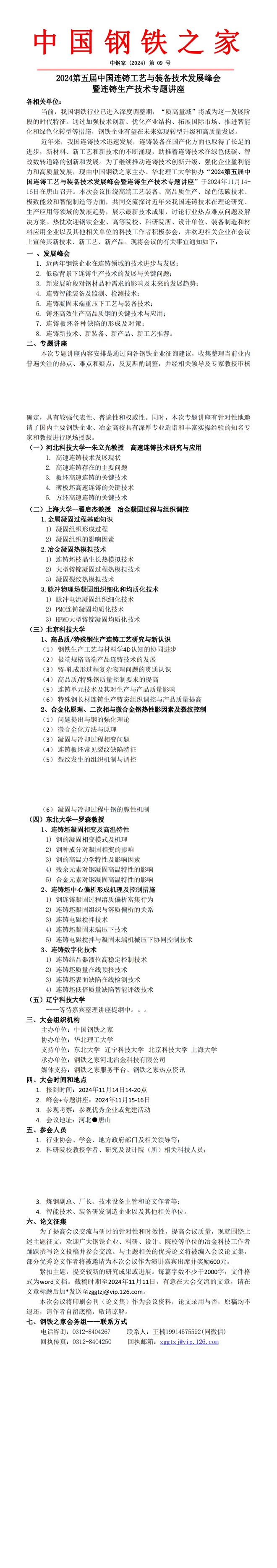 2024第五屆中國連鑄工藝與裝備技術發展峰會暨連鑄生產技術專題講座