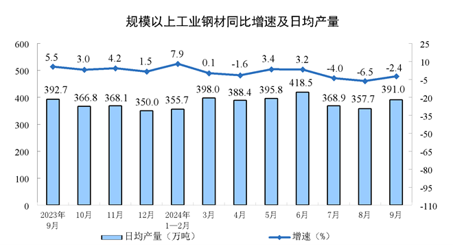 據(jù)國(guó)家統(tǒng)計(jì)局?jǐn)?shù)據(jù)顯示,2024年9月份,我國(guó)粗鋼產(chǎn)量7707萬(wàn)噸,同比下降6.1%;1-9月份,我國(guó)粗鋼產(chǎn)量76848萬(wàn)噸,同比下降3.6%。