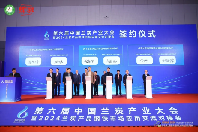 會上,神木市蘭炭產業辦就蘭炭產業情況及市場應用進行推介,共簽約《蘭炭供應采購戰略合作協議》6個,《蘭炭在鋼鐵領域噴吹和燒結替代推廣應用協議》1個,《蘭炭產品出港鐵水聯運戰略合作協議》1個,購銷蘭炭產品600萬噸,約60億元。