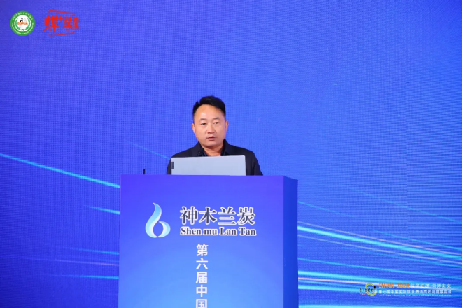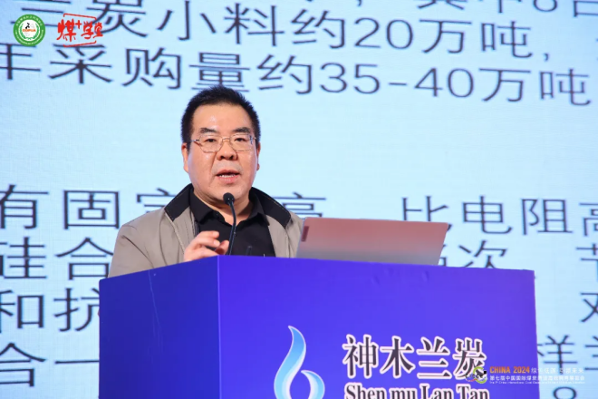 神木市蘭炭產業發展領導小組辦公室黨支部書記劉朝輝為與會代表做題為《神木市蘭炭產業及市場應用推介》的報告。