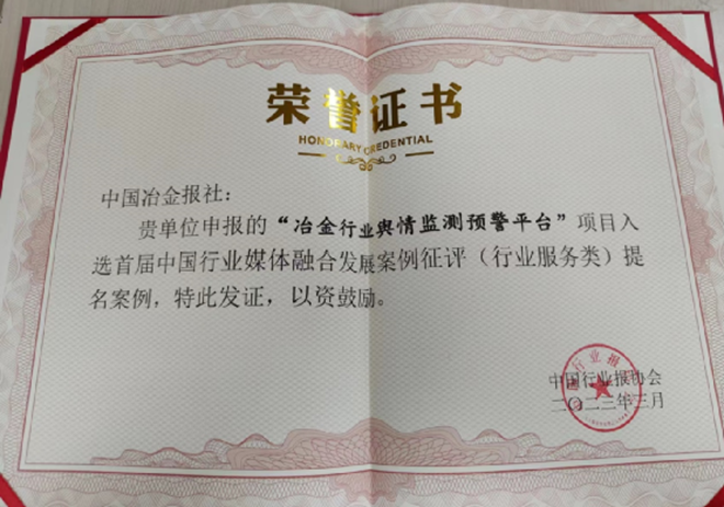 冶金行業輿情監測預警平臺(以下簡稱平臺)是中國冶金報社(以下簡稱報社)深入學習貫徹習近平總書記關于媒體融合發展的重要論述,加快報社改革和融合發展的重要實踐。平臺由報社與行業領先的數據公司聯合打造,是冶金行業第一家專門為行業提供輿情服務的平臺,于2017年5月份正式上線。平臺成立7年來,在促進報社經營工作提升的同時,為行業輿論形象的改善作出了貢獻,成為報社融合發展的典型案例。