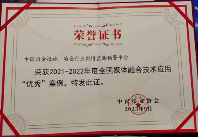 截至目前,平臺先后榮獲2021年全國報業媒體融合案例優秀獎、首屆中國行業媒體融合發展案例征評(行業服務類)提名案例、2021—2022年度全國媒體融合技術應用“優秀”案例等獎項。