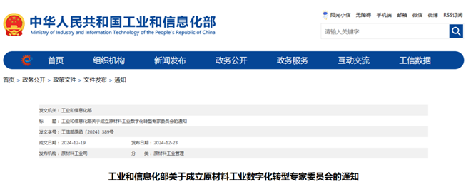 12月23日,工業和信息化部發布了關于成立原材料工業數字化轉型專家委員會的通知。