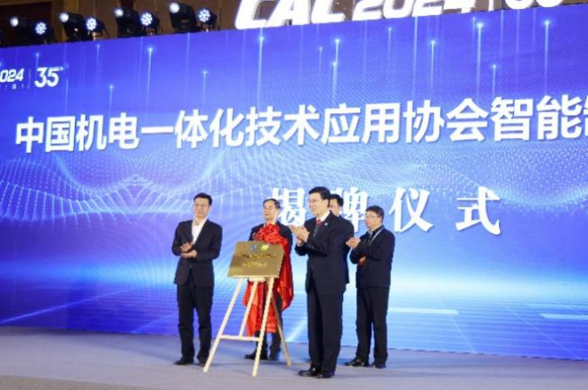 開幕式上,在中國機電一體化技術應用協會副會長曲道奎,合肥工業大學原副校長劉志峰,泰興市委常委、副市長范存力的共同見證下,中國機電一體化技術應用協會會長李亞平、泰興高新區黨工委書記蔣杰代表雙方為“中國機電一體化技術應用協會智能制造產業基地”揭牌。