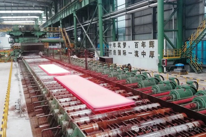 期間,首鋼京唐制造部、中厚板事業部、鋼軋作業部、質檢監督部、銷售管理部、技術中心與首鋼技術研究院、股份營銷中心等單位高效協同,針對該訂單規格尺寸,優化鑄坯設計和軋制規程,同時根據產品厚規格超寬幅的特點,優化軋制和熱處理工藝,保證產品的強韌性能,最終成功生產出尺寸、性能、表面質量等均滿足用戶和標準要求的產品,保障了從合同組織到產品交付的全流程優質服務。此次合同的快速交付,體現了首鋼京唐快速響應用戶需求及智能制造、快速精準交貨的能力。