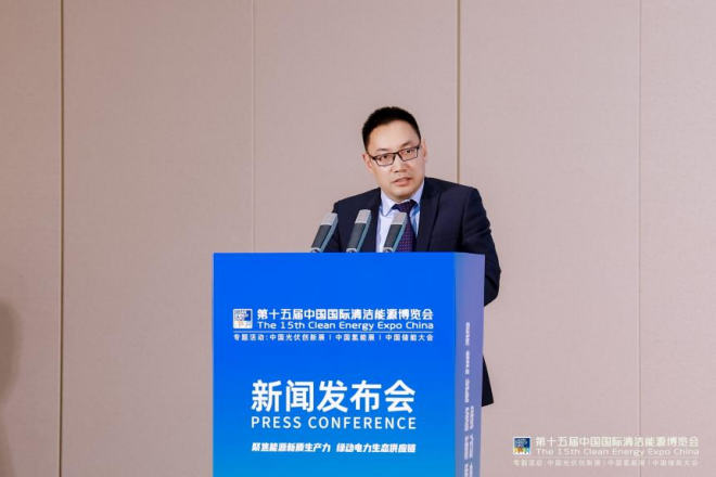 截止到本次發布會,已有中國中車、陽光電源、天合光能、晶澳太陽能、正泰新能源、通威股份、一道新能、愛旭股份、高景太陽能、華晟新能源、英利能源、中節能太陽能、陽光能源、捷泰科技、大恒能源、橫店東磁、浙商中拓、比亞迪儲能、海辰儲能、華為數字能源等425家國內外知名企業參展,包括15家央國企和3個地方展團。其中,新展商占比達47%,預計最終將有超500家企業參展。