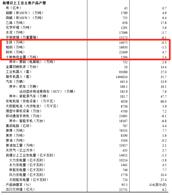 國(guó)家統(tǒng)計(jì)局公布的數(shù)據(jù)顯示,1-2月份我國(guó)粗鋼產(chǎn)量為16630萬噸,同比下降1.5%。1-2月份我國(guó)生鐵產(chǎn)量為14075萬噸,同比降低0.5%。1-2月份我國(guó)鋼材產(chǎn)量為22409萬噸,同比增長(zhǎng)4.7%。