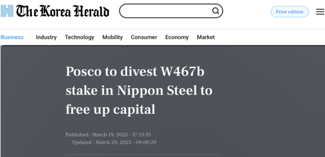 據(jù)《韓國先驅報》報道,韓國浦項制鐵集團的母公司浦項制鐵控股(POSCO Holdings)宣布計劃剝離其在日本制鐵(Nippon Steel)的股份。在此之前,日本制鐵于2024年9月決定出售其在 POSCO Holdings 的股份,價值約 1.1 萬億韓元,為收購美國鋼鐵公司(US Steel)提供資金。