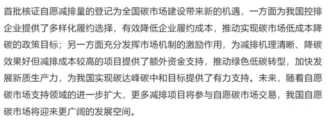 全國溫室氣體自愿減排交易市場首批核證自愿減排量(CCER)完成登記。這是我國自愿碳市場建設取得的重要實質進展,對推動和激勵我國更廣泛的行業企業參與綠色低碳發展具有重要意義。