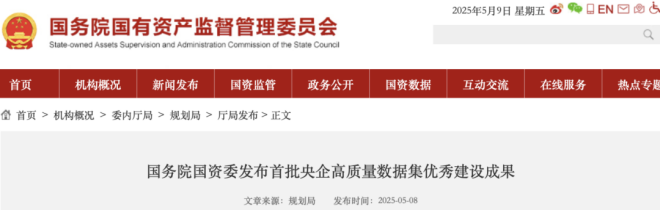 5月8日,國(guó)務(wù)院國(guó)資委發(fā)布首批央企高質(zhì)量數(shù)據(jù)集優(yōu)秀建設(shè)成果名單。