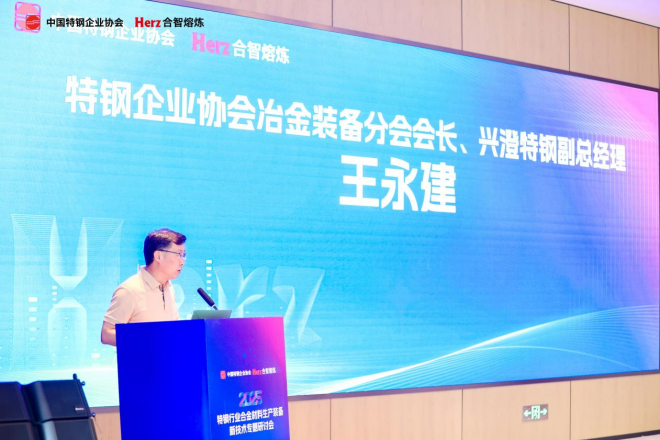 會上,中國特鋼企業協會冶金裝備分會會長、江陰興澄特鋼副總經理王永建致辭,他強調了技術創新對特鋼行業高質量發展的關鍵作用,期待通過此次研討會凝聚智慧,推動產業升級。
