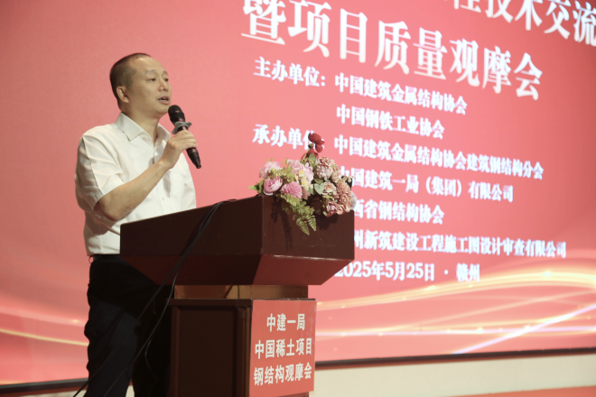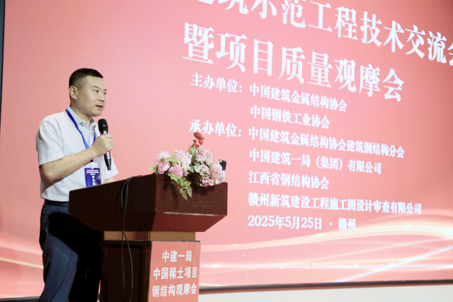 為深化鋼結構建筑技術創新與產業協同,推動建筑鋼結構行業高質量發展。由中國建筑金屬結構協會、中國鋼鐵工業協會聯合主辦,中國建筑金屬結構協會建筑鋼結構分會、中國建筑一局(集團)有限公司、江西省鋼結構協會、贛州新筑建設工程施工圖設計審查有限公司聯合承辦的鋼結構建筑示范工程建造技術交流會暨現場質量觀摩會議于2025年5月25日在江西贛州順利召開。來自行業協會、科研機構、高校及企業的專家代表、工程技術人員150余人參加會議。