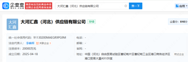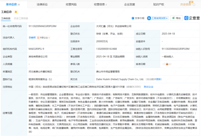 從企查查獲悉,近期,大河匯鑫(河北)供應(yīng)鏈有限公司注冊成立!河北省鋼鐵產(chǎn)業(yè)供應(yīng)鏈平臺正式投入運(yùn)營。