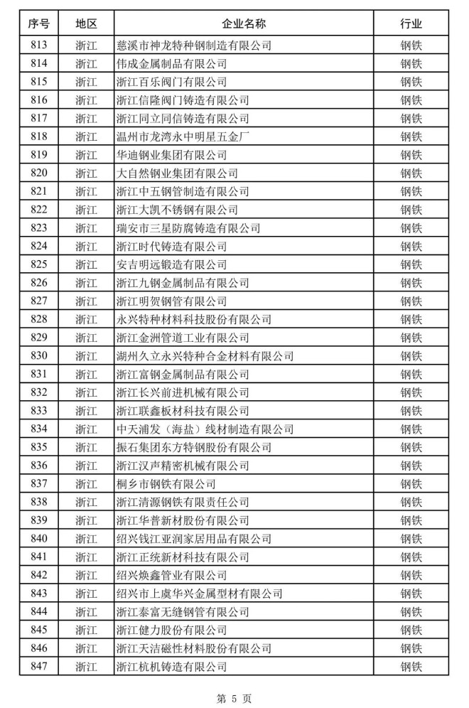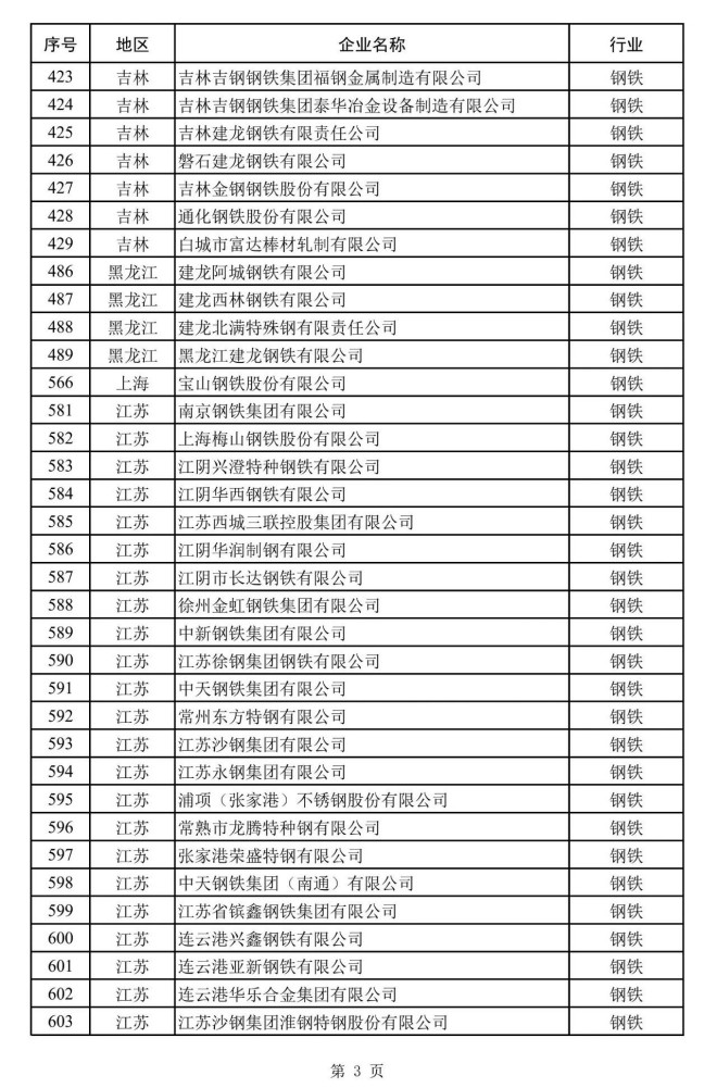 其中,鋼鐵企業名單如下: