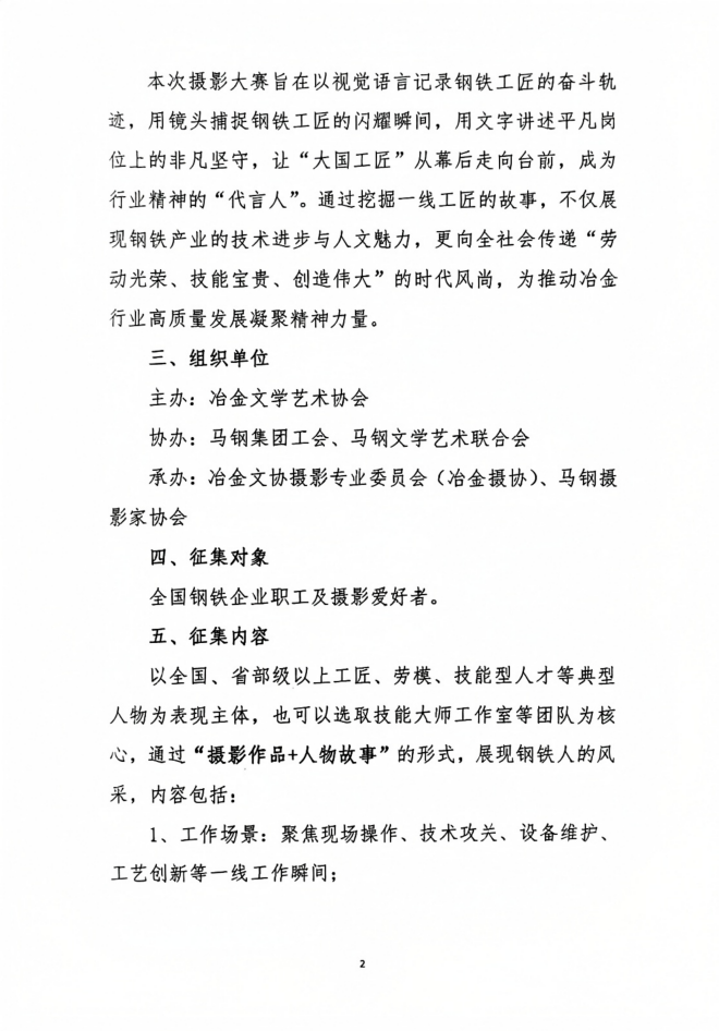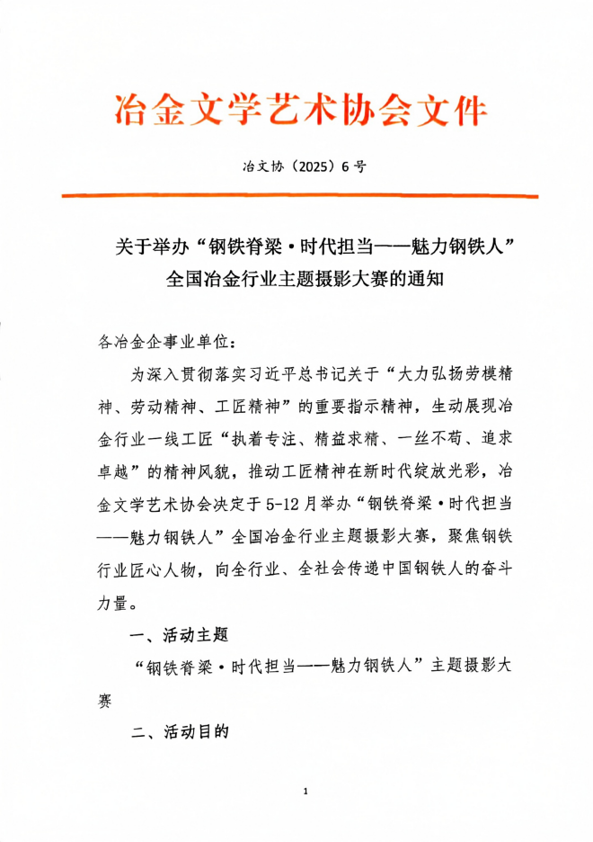 關(guān)于舉辦“鋼鐵脊梁·時代擔(dān)當(dāng)——魅力鋼鐵人”全國冶金行業(yè)主題攝影大賽的通知