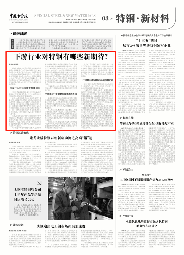 面對不斷升級的市場需求和技術挑戰,特鋼企業需要與產業鏈上下游企業加強合作,攜手共進,共同推動特鋼行業高質量發展。