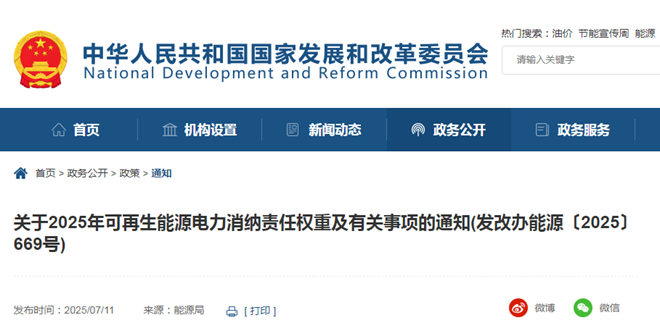 近日,國家發展改革委辦公廳、國家能源局綜合司發布了關于2025年可再生能源電力消納責任權重及有關事項的通知。