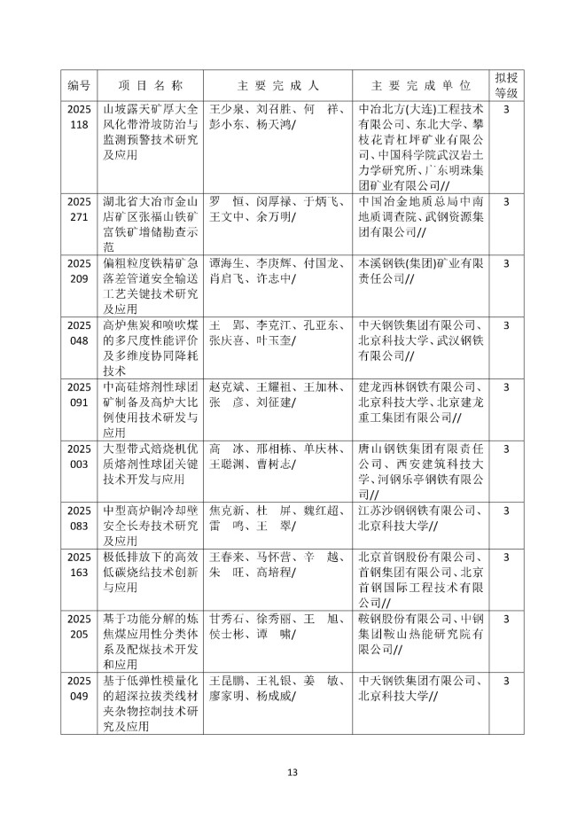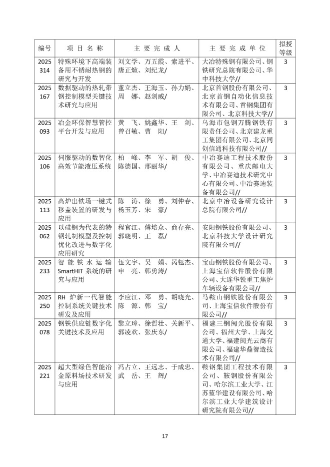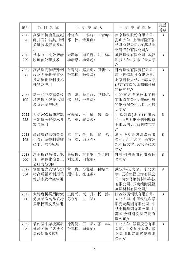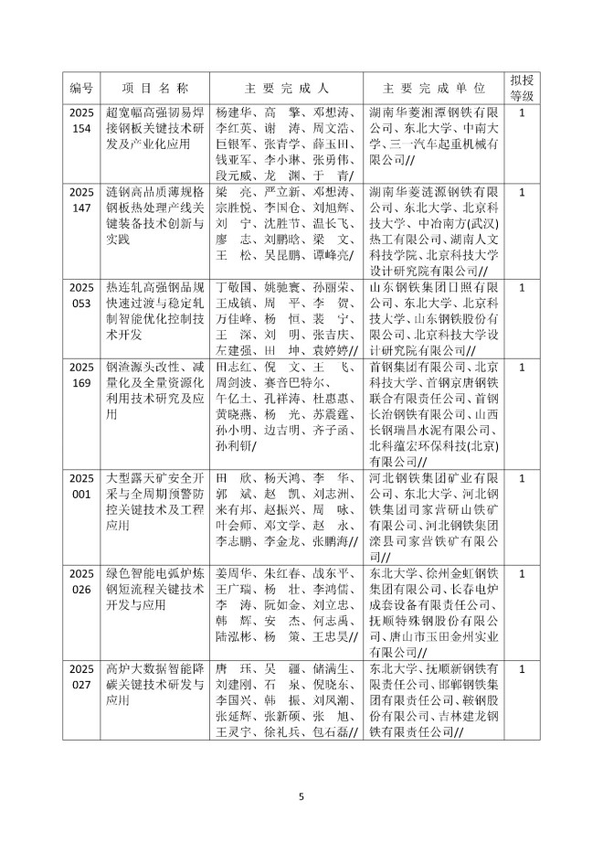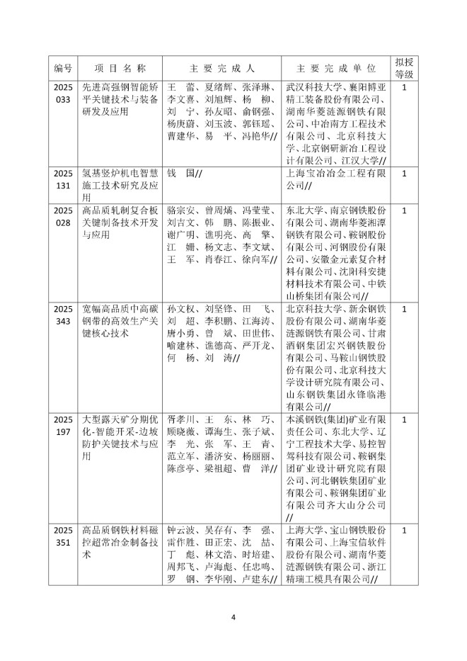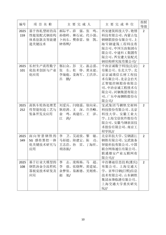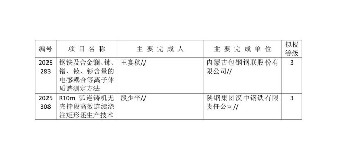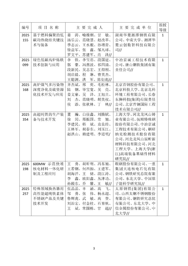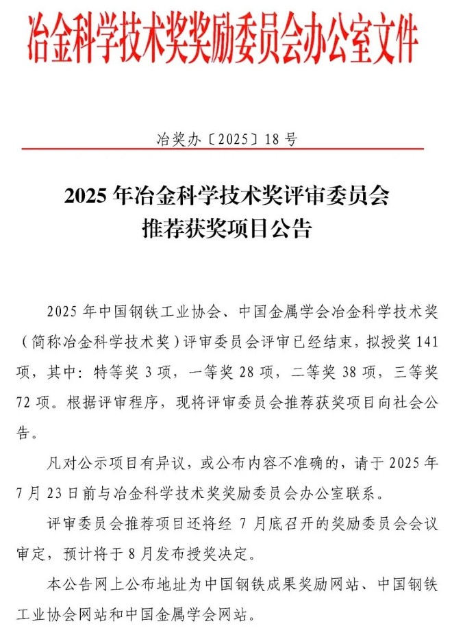 2025年冶金科學技術獎評審委員會推薦獲獎項目公告