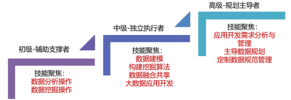 《評價規范》將礦山大數據工程技術人員職業分為初、中、高三個級別。初級定位是輔助支撐者,在有明確的操作步驟的前提下完成操作任務;中級定位是獨立執行者,能獨立完成較復雜的工作任務,并參與規劃工作;高級定位是規劃主導者,主導開展工作,并指導初、中級從制度到實施、從規劃到優化等實施工作。