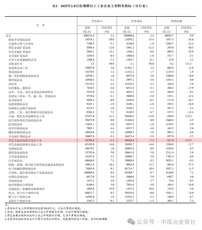 黑色金屬冶煉和壓延加工業1-8月份利潤總額837億元