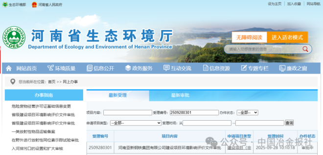 近日,河南省生態環境廳發布了河南亞新鋼鐵集團有限公司建設項目環境影響評價文件審批。
