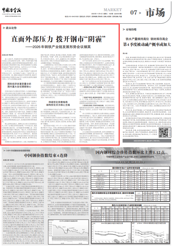 10月30日—11月1日,2026年鋼鐵產業鏈發展形勢會議召開。來自鋼鐵產業鏈上下游的專家、企業代表齊聚一堂,圍繞當前國內外經貿形勢、鋼材市場基本面運行趨勢及2026年行業潛在機遇等話題展開研討,為行業發展建言獻策。