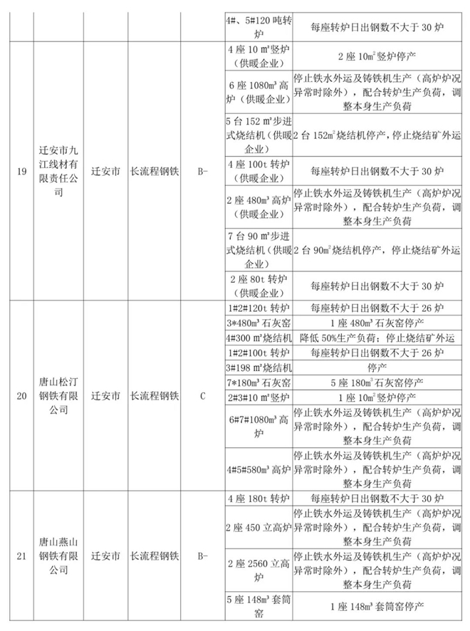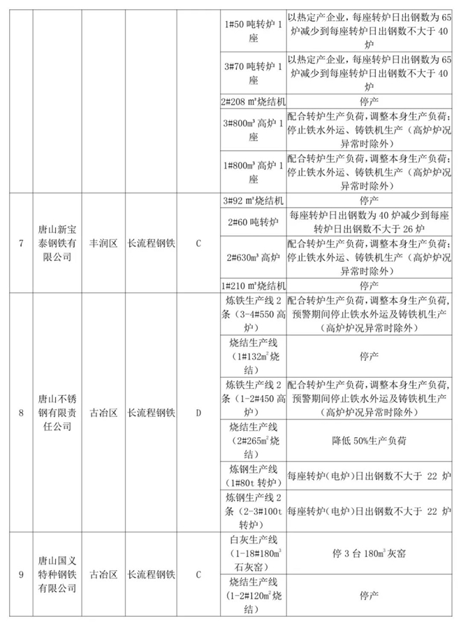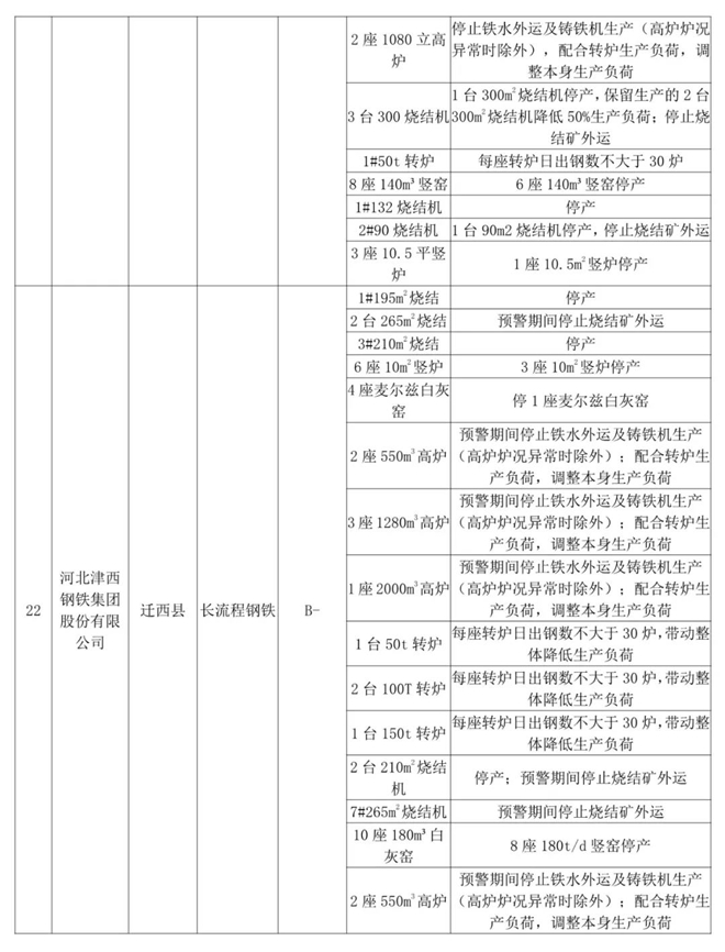 為此,唐山市23家鋼鐵企業(yè)實施停限產(chǎn)。具體工業(yè)源減排措施如下: