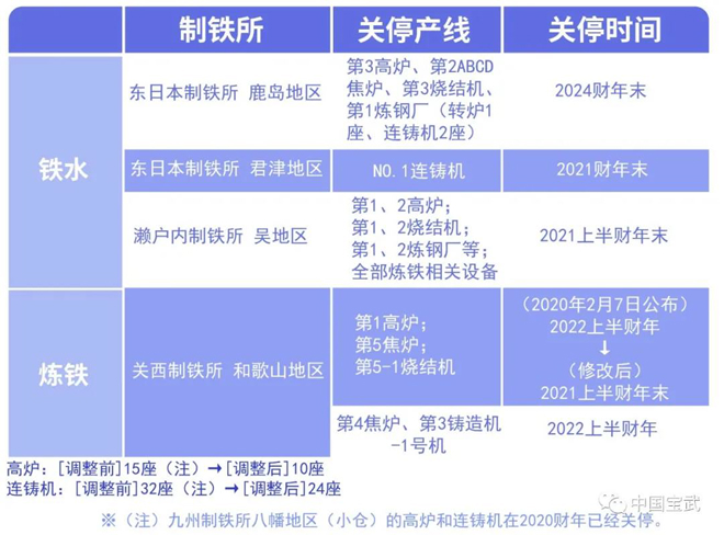 除了關停已經公布的瀨戶內制鐵所吳地區全部煉鐵設備(高爐2座、燒結、煉鋼)以及關西制鐵所和歌山地區煉鐵設備(高爐1座及相關設備)外,還計劃實施如下舉措——