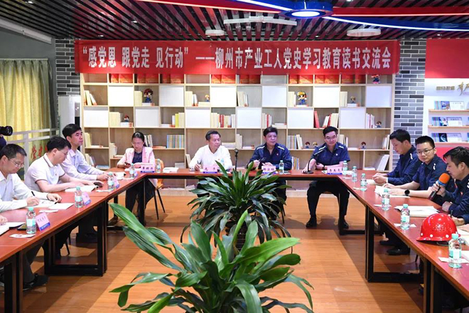 圖為柳州市產業工人黨史學習教育讀書交流會現場。