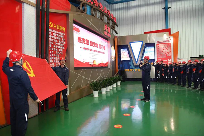 在柳鋼集團“鋼鐵先鋒黨員淬煉線”,黨員領導干部現場快閃演唱《沒有共產黨就沒有新中國》、重溫入黨誓詞、實地參觀學習,感受柳鋼集團將黨建文化融入生產現場,將黨員精神貫穿生產全程,將帶動效應植入職工內心的氛圍。