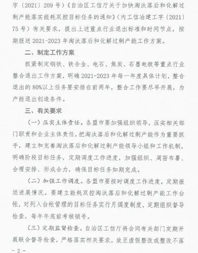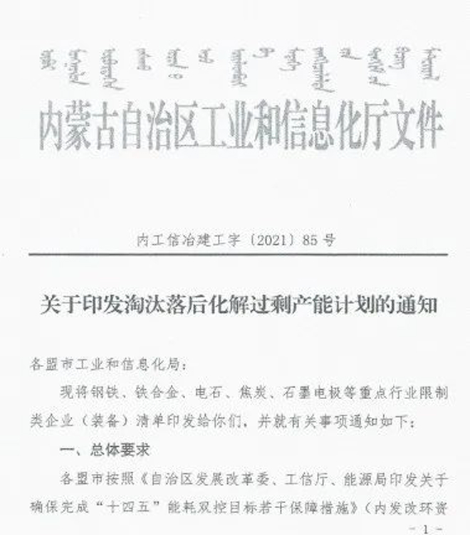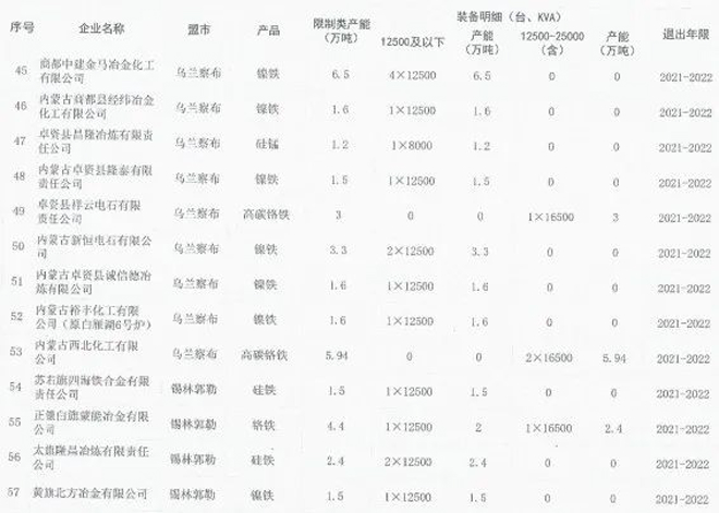日前,內蒙古自治區工業和信息化廳印發《關于印發淘汰落后化解過剩產能計劃的通知》(以下簡稱《通知》),《通知》要求各盟市抓緊制定鐵合金、鋼鐵行業退出方案,明確2021~2023每一年度具體計劃,并要求整合退出的80%以上任務要安排在2021~2022年,整合工作要盡早開展,為產能退出創造條件。