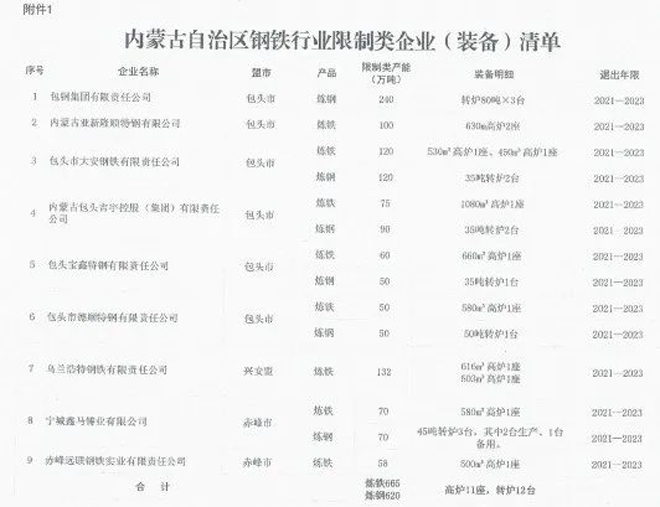 內蒙古:鋼鐵行業這些裝備2023年底前全部退出