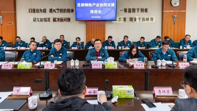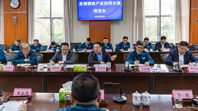 4月9日上午,昆鋼鋼鐵產業協同支撐推進會召開。中南鋼鐵總裁、黨委副書記李世平出席會議并對昆鋼鋼鐵產業相關工作提出要求。昆鋼公司黨委書記、董事長杜陸軍參加會議,昆鋼公司黨委副書記、總經理、副董事長馬德主持會議。