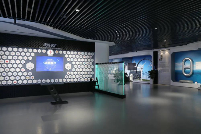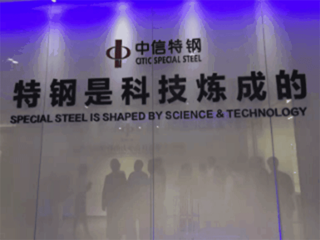 圖為中信泰富特鋼展廳戰略合作客戶墻。(資料照片)