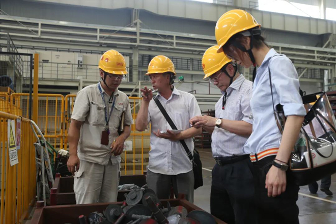 圖為中信泰富特鋼興澄特鋼技術人員深入用戶生產現場進行調研。(特約通訊員 陸衛宇 攝)