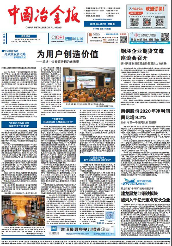 《中國冶金報》中信泰富特鋼高質量發展之路采訪報道組
