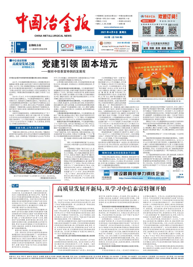 《中國冶金報》中信泰富特鋼高質(zhì)量發(fā)展之路采訪報道組