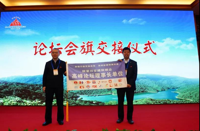 來自陜鋼、晉南鋼鐵、建邦鋼鐵、酒鋼、高義鋼鐵、德勝鋼鐵、川威鋼鐵等會員單位的近200名代表出席論壇。論壇還舉行了會旗交接儀式,下一屆論壇理事長由酒鋼集團黨委書記、董事長陳得信擔任。