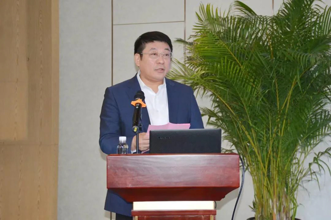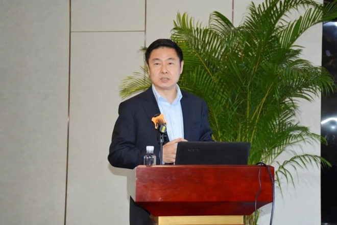圖為河鋼集團副總經理李毅仁作題為《碳中和愿景下的河鋼低碳綠色發展路徑》的報告